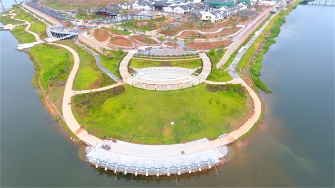 長沙圩鎮(zhèn)碧道鋪設了瀝青并劃分跑道和自行車道,“顏值”再獲提升。(林翔?攝)位于梅江河圩鎮(zhèn)段碧道沿線的紅色休閑廣場效果....